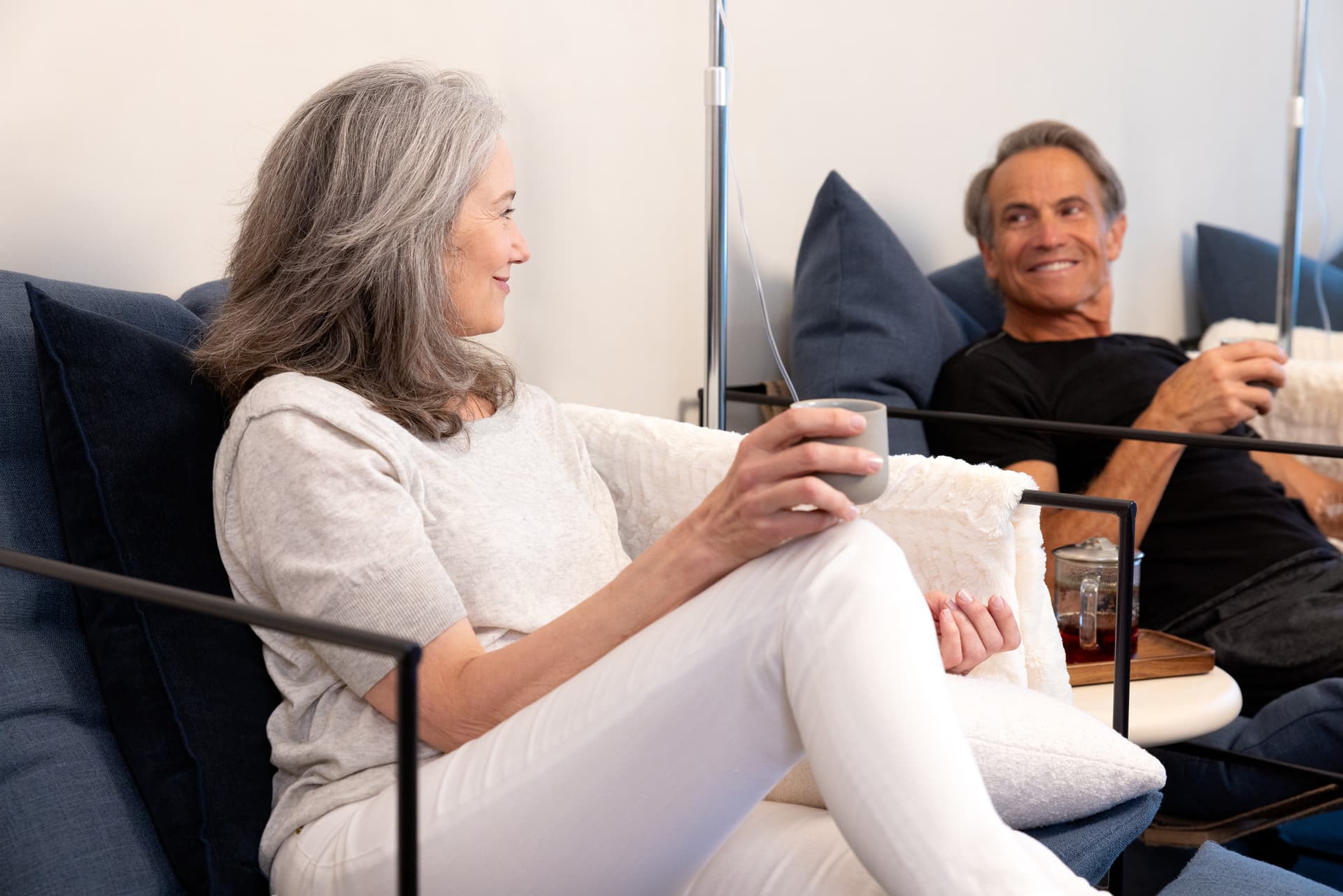 Some individuals may experience mild discomfort or temporary symptoms such as warmth, lightheadedness, or nausea, but the infusion process is typically smooth and well-tolerated. A registered nurse is available throughout the session to provide support, and most clients read, work on their laptops, or relax during treatment. Herbal tea is provided for added comfort.